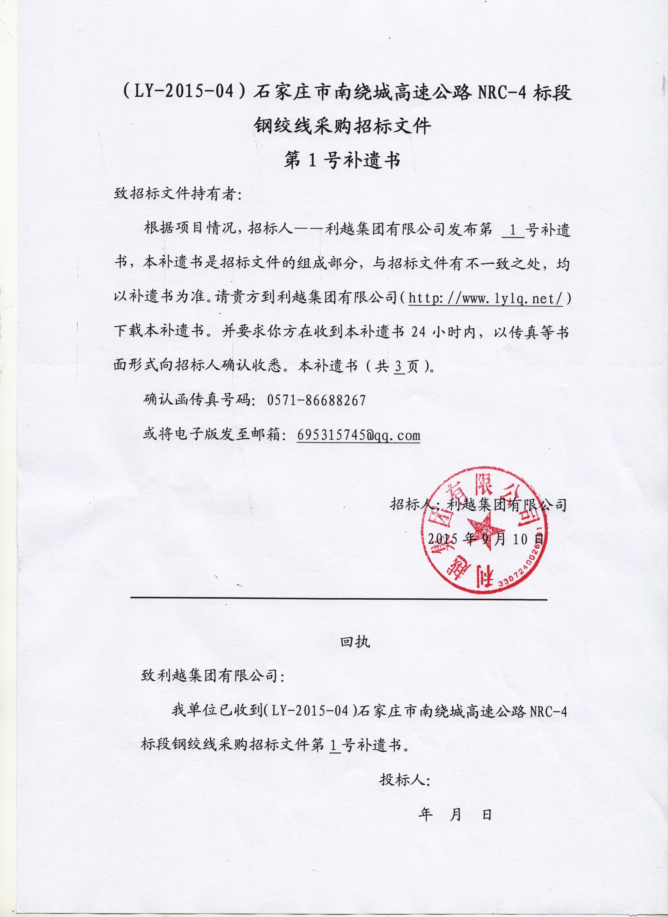利越集团石家庄市南绕城高速公路NRC-4段钢绞线采购招标公告