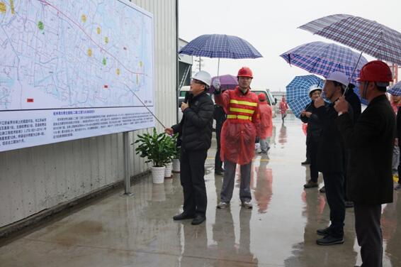 1月5日上午,浙江省交通运输厅党组成员、省公路局局长洪秀敏一行十余人在嘉通集团领导的陪同下冒雨视察了杭州湾大桥北接线(二期)工程项目。